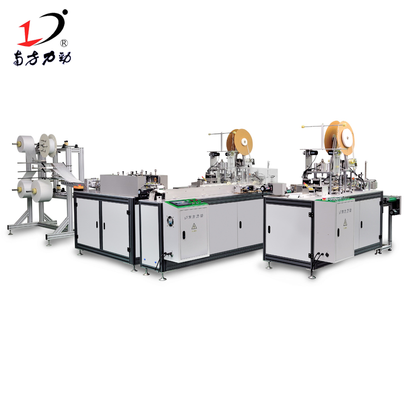 1.我們知道平面口罩是由口罩本體與耳帶組合而成,傳統(tǒng)平面口罩機(jī)是由一臺(tái)本體機(jī)生產(chǎn)口罩本體,再由內(nèi)/外耳帶機(jī)焊接耳帶,一臺(tái)平面本體機(jī)的產(chǎn)量大概是耳帶焊接機(jī)的2-3倍,為了實(shí)現(xiàn)本體機(jī)與自動(dòng)點(diǎn)耳帶機(jī)產(chǎn)量的 配合,我們需要一臺(tái)本體機(jī)組合二臺(tái)內(nèi)外耳帶機(jī),以此達(dá)到產(chǎn)線的 大效率.南方力勁 NK-MMP02一拖二平面口罩機(jī)實(shí)現(xiàn)機(jī)器的自動(dòng)化生產(chǎn),每分鐘產(chǎn)量達(dá)100-120片!
