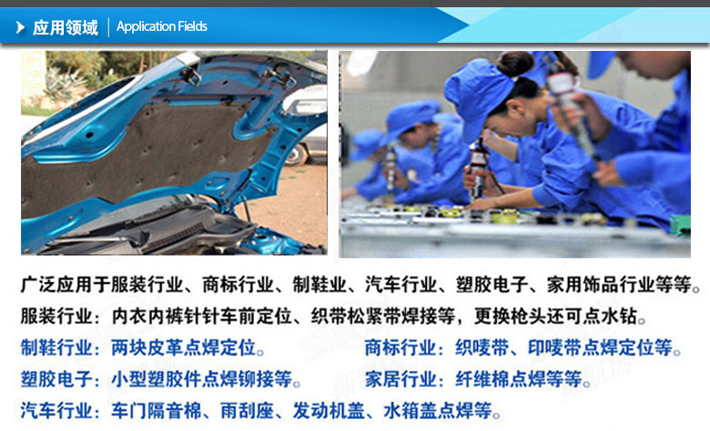超聲波手焊機還具有點鉆點焊功能,操作簡單便捷,體積小巧不占空間。無論是服裝行業商標行業汽車行業,還是塑膠電子家用品等行業,這款設備都成為廠家們喜愛的小型利器,大大提高了工作效率。
