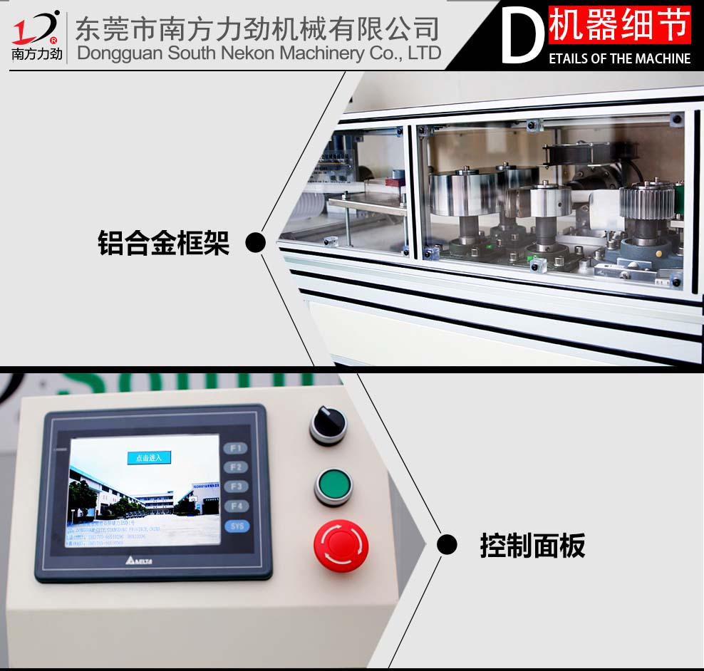 3:條形帽機采用全自動鋁合金機架,外形美觀不生銹,觸摸屏控制,剎車馬達,噪音低。