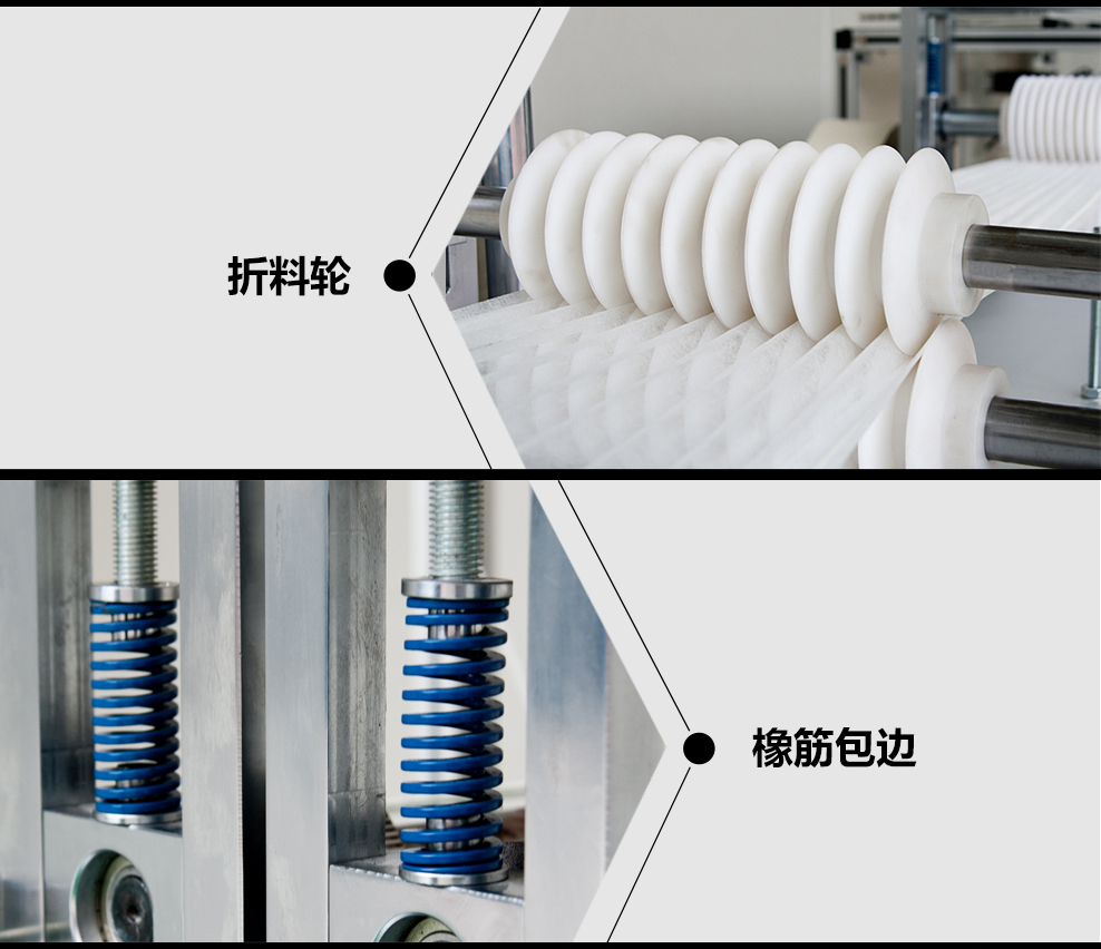 2:條形帽機采用超聲波工作原理,自動張力控制,無線縫合,無針孔,斷線,產品可達到水氣密。