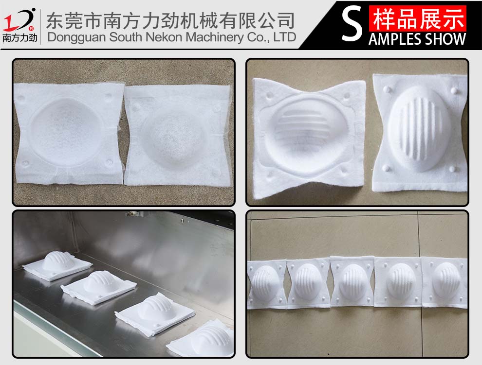 南方力勁全自動杯型口罩成型機利用高溫熱壓成型原理使工件結實成型。該口罩成型機可以自動完成從送料,到同時成型、剪切以及退料等多道工序,相比傳統的人工送料、退料、剪切可以省去3-5個人工,每分鐘可生產口罩30-36個,采用PLC控制系統,觸摸屏設置,操作簡單快捷,可單人單機使用,人工放料及取料。增添生產效率。