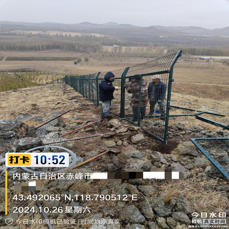 立柱方管 60mm*60mm*2.0mm*2300mm立柱可定制尺寸,也可安裝水泥立柱, (塑前) 2.網(wǎng)孔 75mm*150mm 3.邊框:30mm*50mm*1.5mm (塑前)邊框厚度可根據(jù)要求選擇也可定制 4.絲徑:5.0mm 塑后 5.外型尺寸:1800mm*2750mm 6.顏色浸塑墨綠