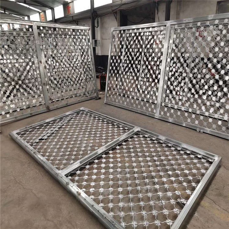 戒毒所鋼網墻具有堅固耐用、美觀大方、刀鋒銳利、防攀爬、抗強風、抗沖擊、抗剪切、抗腐蝕等特點。戒毒所鋼網墻是非常重要的司法安全防護設施,又焊接鋼網加蛇腹形刀刺網組合而成。產品具有結構新穎、堅固緊密、網面平整、網孔均勻、刀鋒銳利、防攀爬、抗腐蝕強等特點。建設于戒毒所的內外墻地面及高墻之上,網墻內側或頂部加裝蛇腹形刀刺網,形成一道高不可攀、難以逾越的隔離屏障。配合高壓打擊電網、各種監控報警設備確保監獄安全萬無一失。