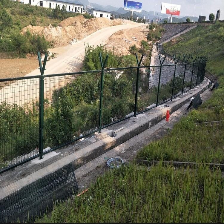 刺圈間距20-625px。機場鋼筋圍界網(wǎng)的立柱基礎應采用現(xiàn)澆混凝土制成,截面500500mm,高度800mm。