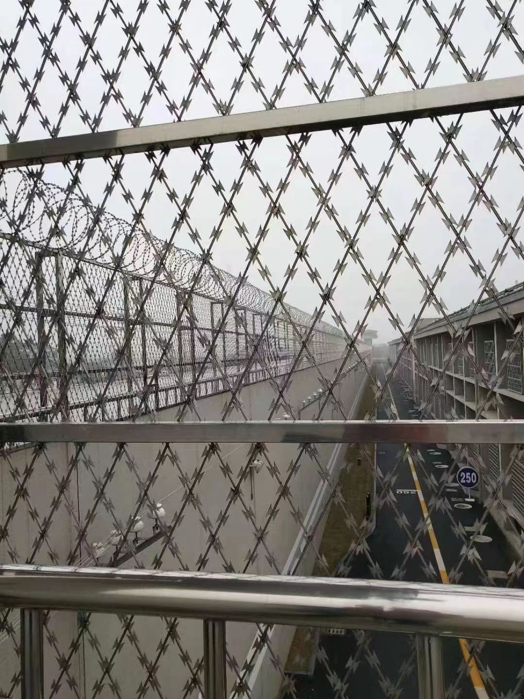 監獄帶刺Y型柱防護網又稱監獄護欄網或監獄隔離柵監獄防護網的防護等級比較高,一般要頂部帶 蛇腹型刀刺網來進行加強防護。在監獄防護網的立柱頂部做V型造型,然后在v型中架設蛇腹型刀刺網。這樣監獄防護網的立柱就形成了一個型,由此作為一個立柱既可以安裝防護網網片又可以安裝蛇腹型刀刺網,一柱兩用。