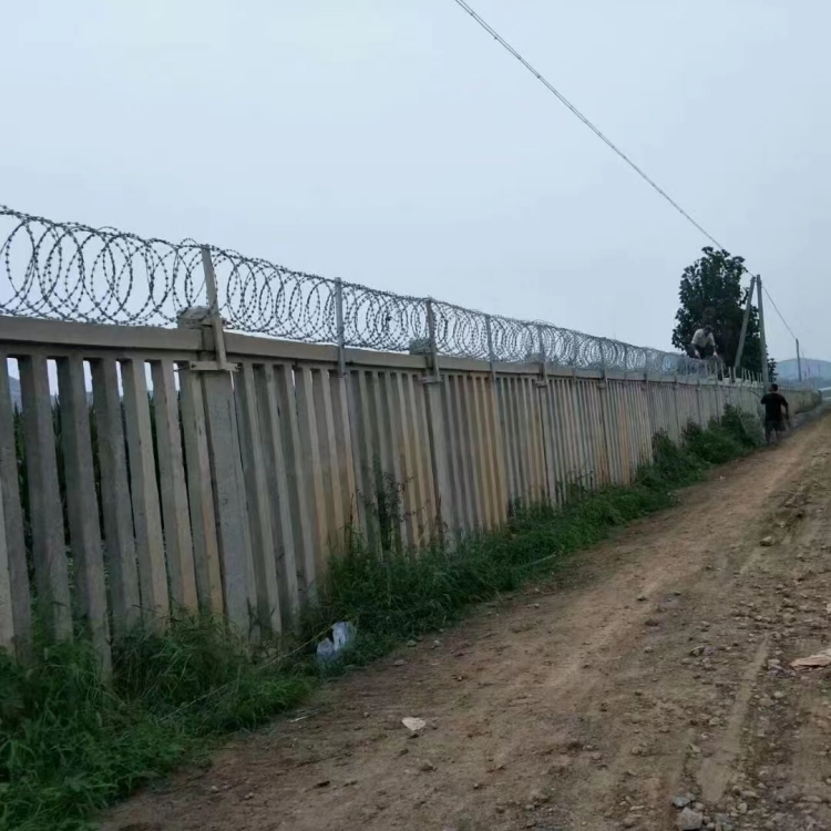 通常來說高鐵兩側(cè)應(yīng)用刺絲滾籠的話會用到水泥制圍欄而刀片刺繩則是安裝到了圍欄上面防止翻越的。在設(shè)計上面不同的地形設(shè)計成了不一樣的樣式,