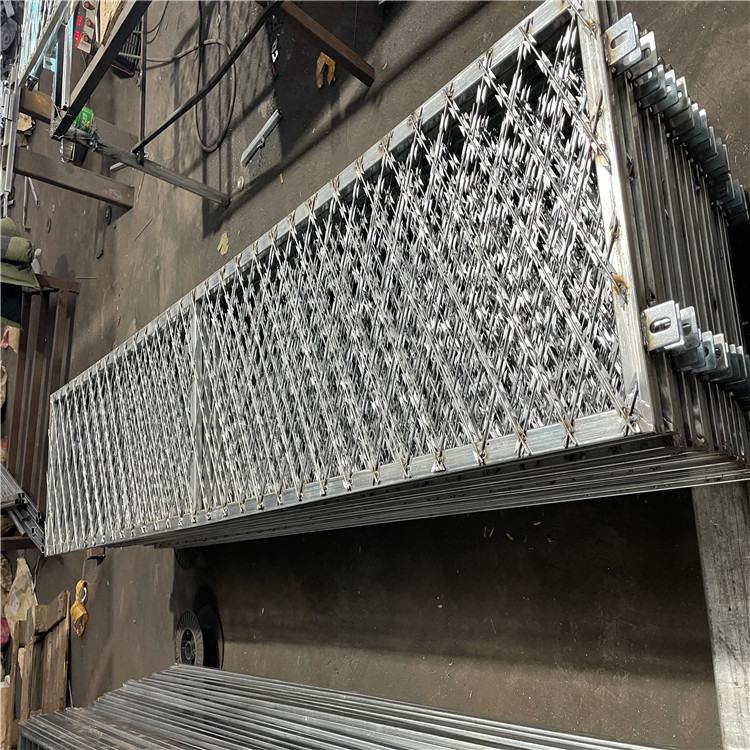 監(jiān)獄刀片刺網(wǎng)具有美觀、經(jīng)濟實用、防阻效果好、施工便利等優(yōu)異特點,刀片刺網(wǎng)由熱鍍鋅鋼板或不銹鋼薄板沖壓出尖銳的刀片狀,高張力鍍鋅鋼絲或者不銹鋼絲做芯線組合而成的阻絕器材。由于刺網(wǎng)造形獨特不易觸摸,因而能達到極好的防護隔離效果。刀片刺網(wǎng)已被廣泛應用于工礦企業(yè),園林公寓,邊防