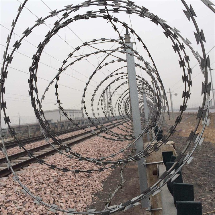 刀片刺繩種類有螺旋刀片刺繩、直條刀片刺繩、焊接刀片刺繩、平鋪刀片刺繩等多種,根據(jù)客戶需求我們將給予客戶優(yōu)質(zhì)的產(chǎn)品和完善的售后服務(wù),我公司生產(chǎn)的鐵路金屬剌絲滾籠-刀片刺絲滾籠網(wǎng)-高鐵加高刺絲滾籠以防腐、表面平整、光亮、耐老化、耐酸堿、不褪色、手感舒適等優(yōu)點而聞名于行內(nèi)外,受到用戶和專家的好評。我廠設(shè)備齊全,工藝先進,技術(shù)力量雄厚,產(chǎn)品實行嚴格的科學管理和檢測手段,并較大限度地滿足用戶的需要。
