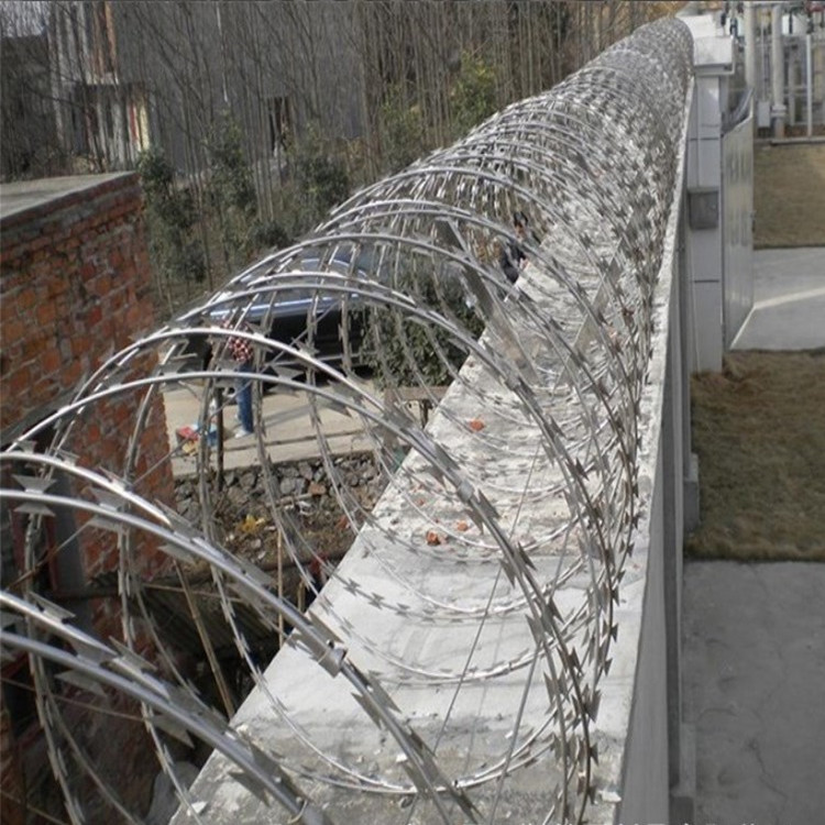 世界各國已將不銹鋼刺繩用于軍事重地,牢獄刀片刺繩防護(hù)網(wǎng),機(jī)關(guān)單位,銀行,以及生活小區(qū)圍墻,私人住宅,別墅的圍墻,門窗高速公路,鐵路護(hù)欄以及邊境線等用來防護(hù)保安。